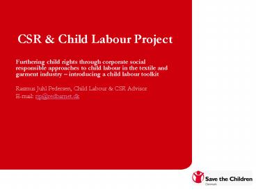 • Rasmus Juhl Pedersen, Child Labour CSR Advisor