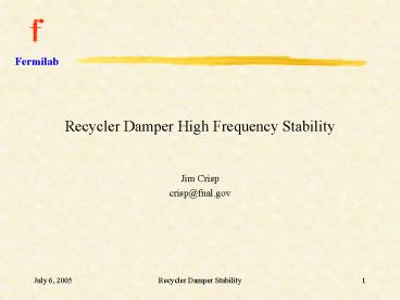 Recycler Damper High Frequency Stability PowerPoint PPT Presentation