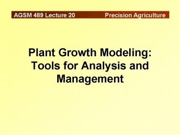 Title: Plant Growth Modeling: Tools for Analysis and Management