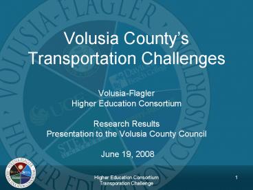 impending road crisis in Volusia County - Initiatives to facilitate community involvement