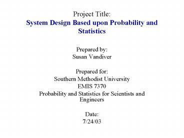 Project Title: System Design Based upon Probability and Statistics PowerPoint PPT Presentation