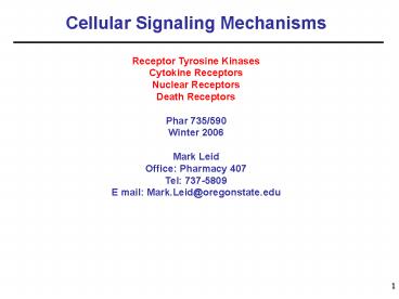 1Cellular Signaling Mechanisms Receptor Tyrosine