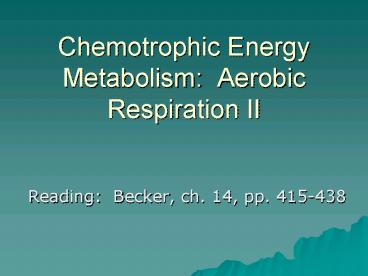 Title: Chemotrophic Energy Metabolism: Aerobic Respiration II