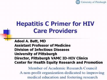 - Director, Pittsburgh VAMC ID-HIV Clinics