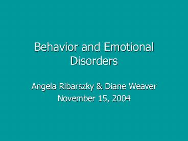 Title: Behavior and Emotional Disorders