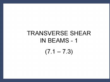 TRANSVERSE SHEAR IN BEAMS 1 PowerPoint PPT Presentation