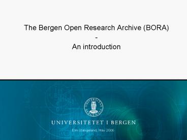 The Bergen Open Research Archive (BORA) PowerPoint PPT Presentation