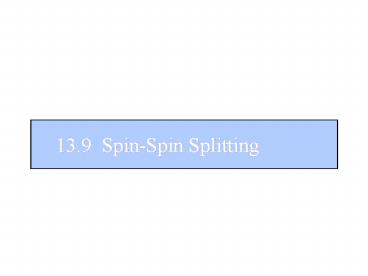 1 13.9 Spin-Spin Splitting