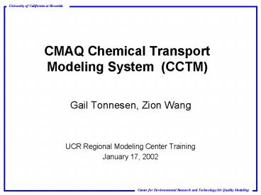 CMAQ Chemical Transport Modeling System CCTM PowerPoint PPT Presentation