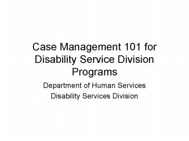 Case Management 101 for Disability Service Division Programs PowerPoint PPT Presentation