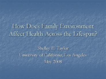 Title: How Does Family Environment Affect Health Across the Lifespan