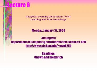 Analytical Learning Discussion (3 of 4) Learning