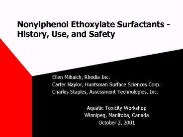 Title: Nonylphenol Ethoxylate Surfactants History, Use, and Safety
