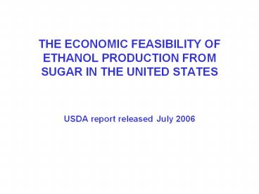 Title: THE ECONOMIC FEASIBILITY OF ETHANOL PRODUCTION FROM SUGAR IN THE UNITED STATES USDA report released July 2006