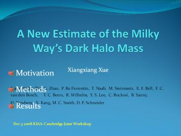 C. Rockosi, B. Yanny, - H. Newberg, X. Kang, M. C. Smith, D. P.