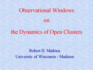 Title: Observational Windows on the Dynamics of Open Clusters