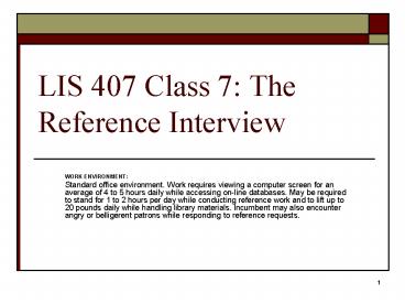 interview. Look and browse the following link - ALA Guidelines for Behavioral Performance of