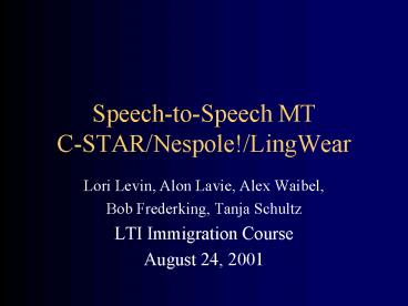 Title: SpeechtoSpeech MT CSTARNespoleLingWear