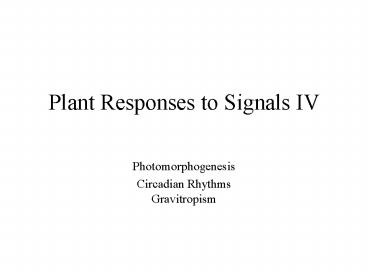 Title: Plant Responses to Signals IV