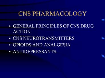 CNS PHARMACOLOGY PowerPoint PPT Presentation