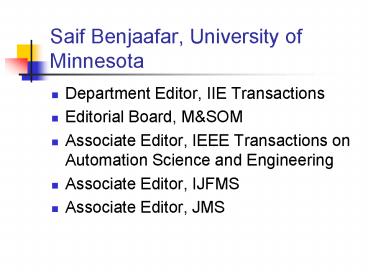 Saif Benjaafar, University of Minnesota PowerPoint PPT Presentation