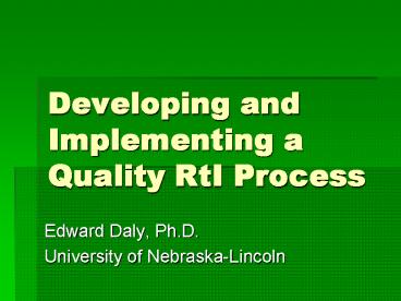 <Notice: Removed> Developing and Implementing a Quality RtI Process PowerPoint PPT Presentation