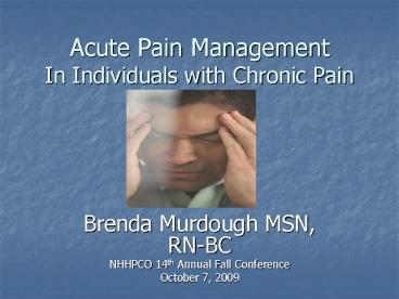 Title: Acute Pain Management In Individuals with Chronic Pain