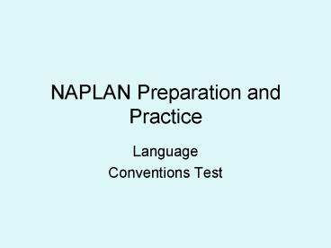NAPLAN Preparation and Practice PowerPoint PPT Presentation