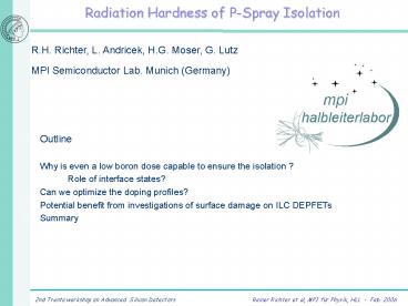 Lutz MPI Semiconductor Lab. Munich (Germany)