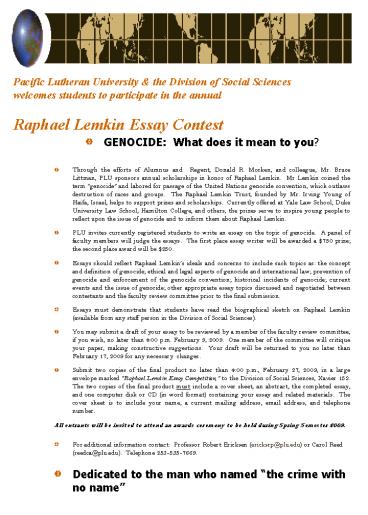 in the annualRaphael Lemkin Essay Contest