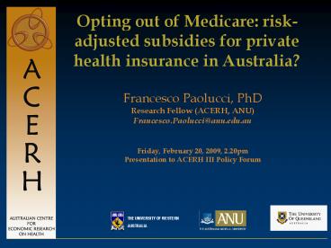 • Aged-care? Denticare? Risk-adjusted subsidies