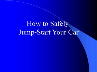 <Notice: Removed> Jump-starting a car can be dangerous if proper procedures are not followed. Always consult your owners manual for specific instructions. Make sure that you are using a good set of heavy-duty jumper cables. Cheap cables can easily heat up, melt and short PowerPoint PPT Presentation