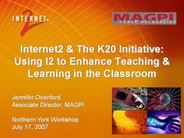 1Internet2 The K20 Initiative Using I2 to