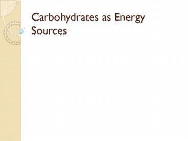 Carbohydrates as Energy Sources PowerPoint PPT Presentation