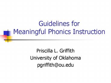 Guidelines for Meaningful Phonics Instruction PowerPoint PPT Presentation