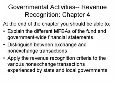 Governmental Activities Revenue Recognition: Chapter 4 PowerPoint PPT Presentation