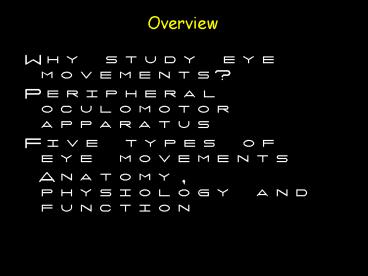 VOR OKN Saccades Smooth pursuit Vergence (fixatio