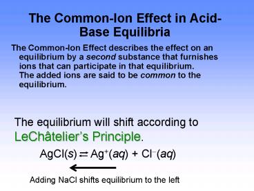 LeChâteliers Principle. AgCl(s) Ag(aq)