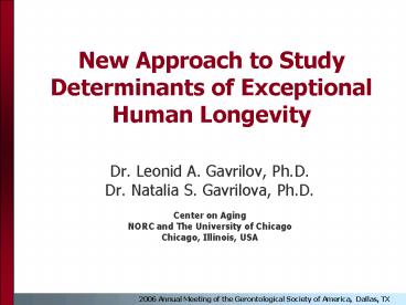 - Dr. Leonid A. Gavrilov, Ph.D.