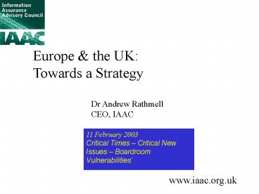 strategy (USA, Australia) - Build on Y2K interdependency analysis (Canada)