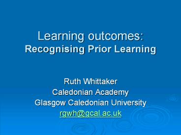 <Notice: Removed> Learning outcomes: Recognising Prior Learning PowerPoint PPT Presentation