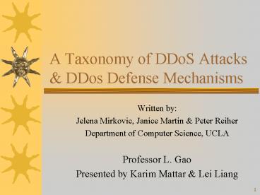 A Taxonomy of DDoS Attacks PowerPoint PPT Presentation