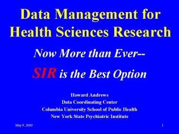Data Management for Health Sciences Research PowerPoint PPT Presentation
