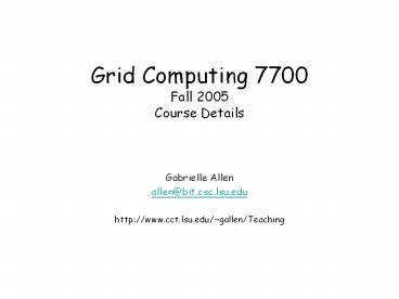 Title: Grid Computing 7700 Fall 2005 Course Details