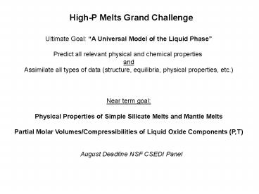 6High-P Melts Grand Challenge Task 1 Simple Melts