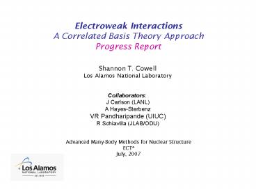 Collaborators J Carlson (LANL) A