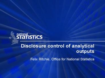 Title: Disclosure control of analytical outputs