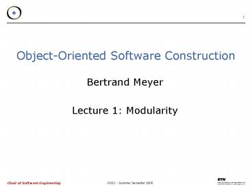<Notice: Removed> Object-Oriented Software Construction PowerPoint PPT Presentation