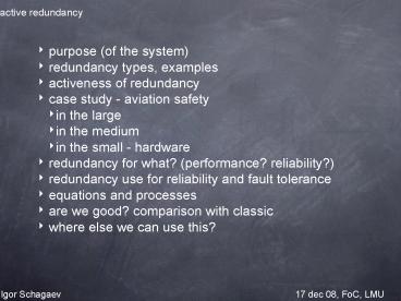 Title: active redundancy