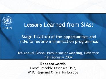 Rebecca Martin Communicable Diseases Unit, WHO